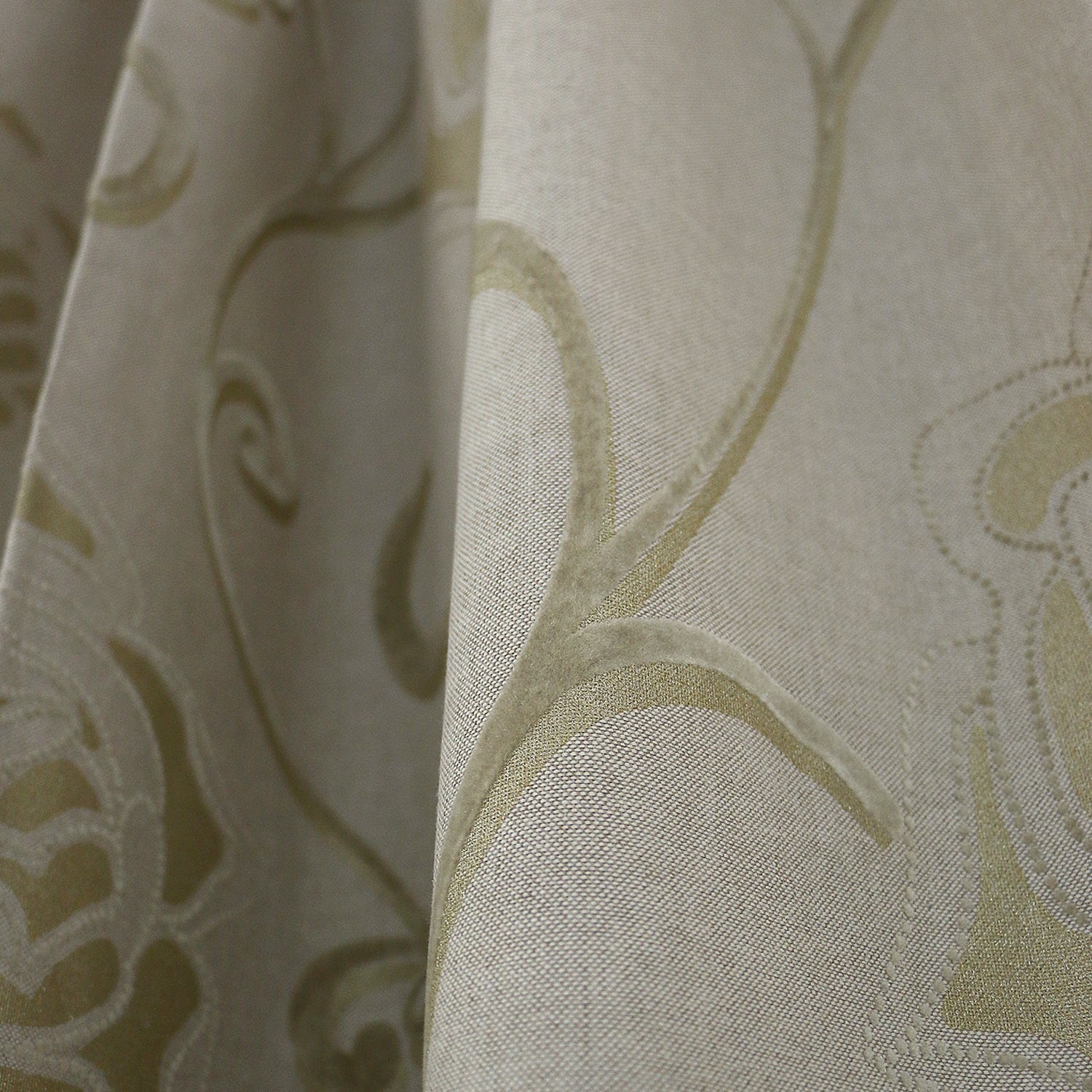 Maison Blanche natural color rattan curtain. The fabric is rattan with embossed gold and velvet beige flowers, of moderate transparency that allows light into the space. It is already sewn with a 6 cm braid at the top ready for hanging, while at the bottom it has a weight. The dimension of each leaf is 145X270. The fabric is polyester with a very nice drape, is machine washable at 30 degrees and is easy to iron. Ideal as an exterior but also recommended alone for all areas of the house, it gives a unique sense of luxury.