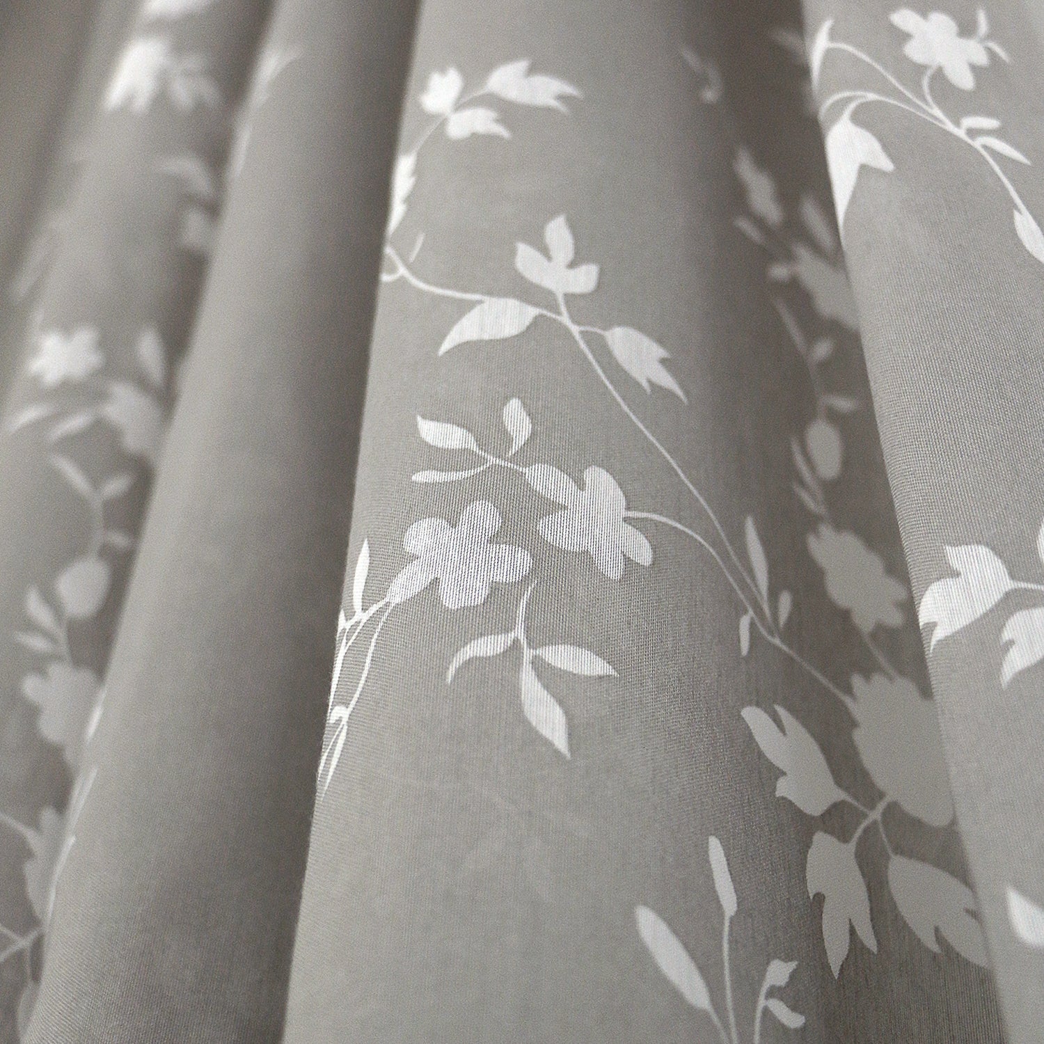 Maison Blanche matte voile curtain in gray. The fabric is gray matte voile with discreet white flowers, very transparent that allows a lot of light into the space. It is already sewn with a 6 cm braid at the top ready for hanging, while at the bottom it has a weight. The dimension of each leaf is 145X290. The fabric is polyester with a very nice drape, is machine washable at 30 degrees and is easy to iron. Ideal as an interior but also recommended alone for all areas of the house, it gives a light and modern feel.