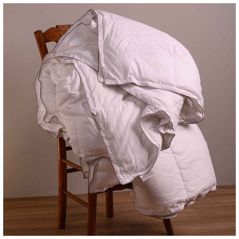 Πάπλωμα 4 εποχών - 2 σε 1. Αποτελείται από δυο επιμέρους παπλώματα τα οποία μπορούν να χρησιμοποιηθούν είτε μαζί, είτε ξεχωριστά, ανάλογα με την εποχή και το κρύο. Είναι κατασκευασμένα από 100% Microfiber σατέν ριγέ ύφασμα εξωτερικά και γέμιση από 100% μικροΐνες 3D 200 GSM. Το ένα πάπλωμα διαχωρίζεται από το άλλο με αποσπώμενα κουμπιά. Κάθε πάπλωμα έχει βάρος 200 GSM άρα όταν χρησιμοποιηθούν μαζί έχουν βάρος 400 GSM.