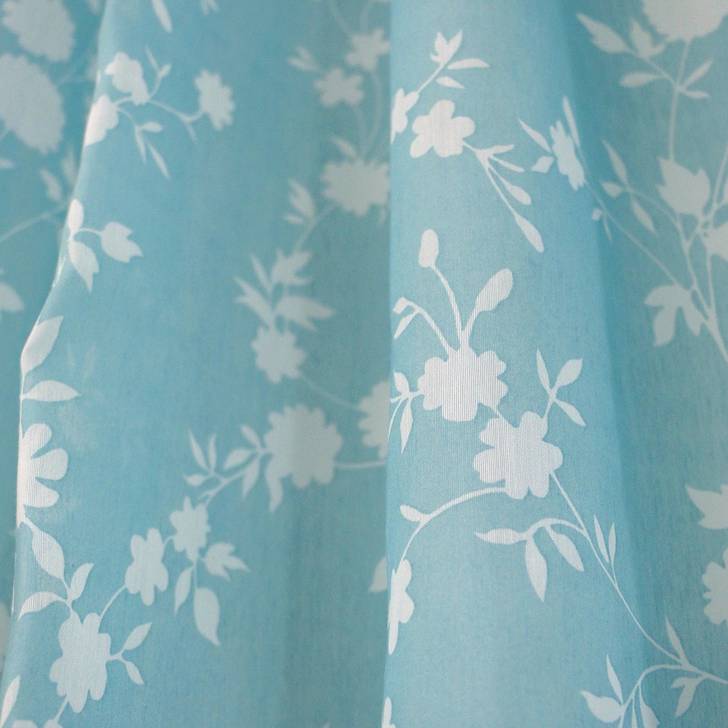 Maison Blanche κουρτίνα βουάλ ματ σε τυρκουάζ χρώμα. Το ύφασμα είναι τυρκουάζ βουάλ ματ με διακριτικά λευκά λουλούδια, μεγάλης διαφάνειας που επιτρέπει πολύ φως μέσα στο χώρο. Είναι ήδη ραμμένη με τρέσα 6 εκ. στο επάνω μέρος έτοιμη για κρέμασμα, ενώ στο κάτω μέρος έχει βαρίδι. Η διάσταση κάθε φύλλου είναι 145Χ290. Το ύφασμα είναι πολυεστερικό με πολύ ωραίο πέσιμο, πλένεται στο πλυντήριο στους 30 βαθμούς και σιδερώνεται εύκολα. Ιδανική ως εσωτερική αλλά και μόνη της προτείνεται για όλους τους χώρους του σπιτιού χαρίζει ανάλαφρη και μοντέρνα αίσθηση.