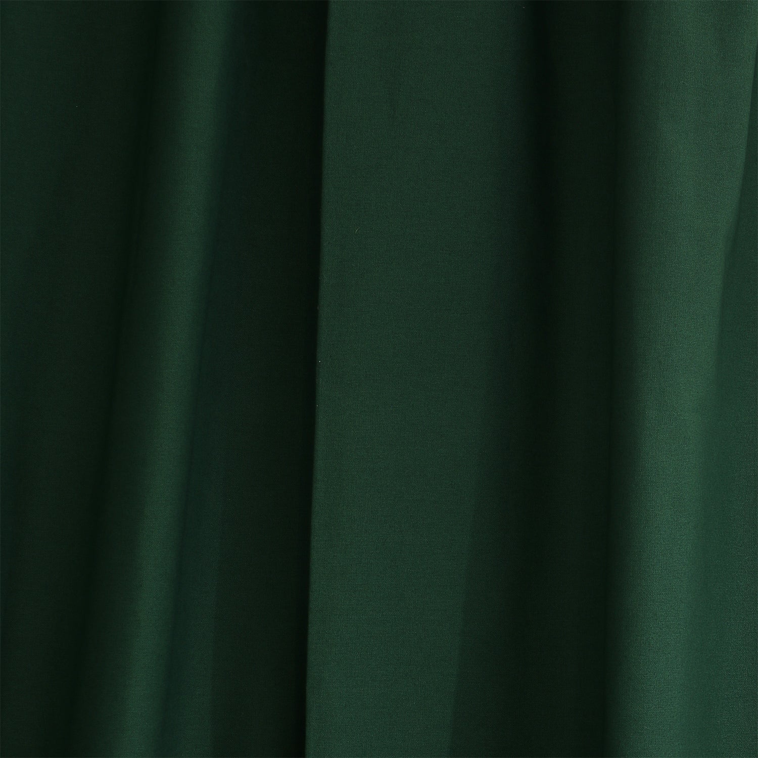 Μονόχρωμη κουρτίνα σε σκούρο πράσινο αδιαφανές που επιτρέπει λίγο φως μέσα στο χώρο. Είναι ήδη ραμμένη με τρέσα 8 εκ. στο επάνω μέρος έτοιμη για κρέμασμα. Η διάσταση κάθε φύλλου είναι 145x270. Το ύφασμα είναι βαμβακερό με πολύ ωραίο πέσιμο, πλένεται στο πλυντήριο στους 30 βαθμούς και σιδερώνεται εύκολα. Ουδέτερη, απλή και μοντέρνα  θα δώσει χρώμα στον χώρο σας, συνδυάζεται εύκολα με πολλά υφάσματα αλλά και μόνη, προτείνεται για όλους τους χώρους του σπιτιού.