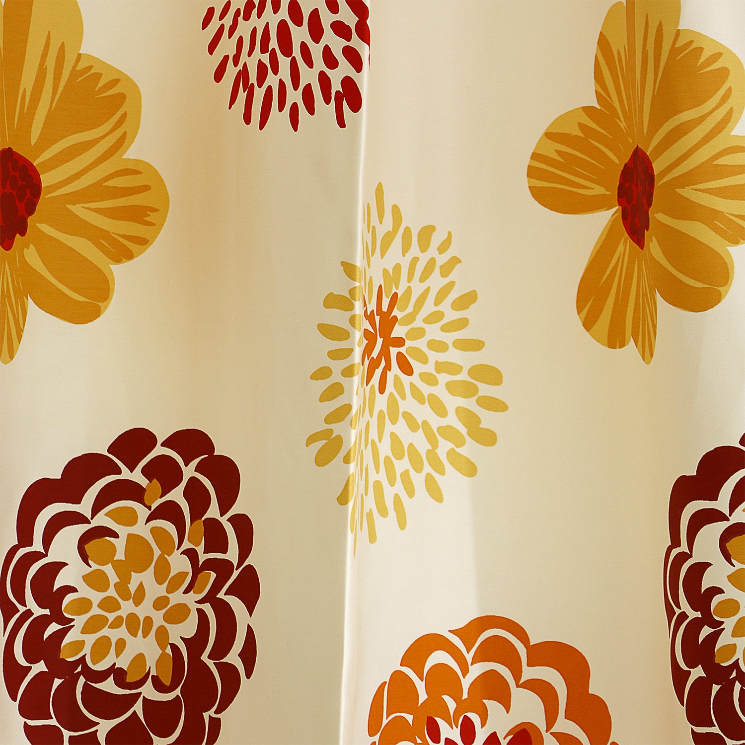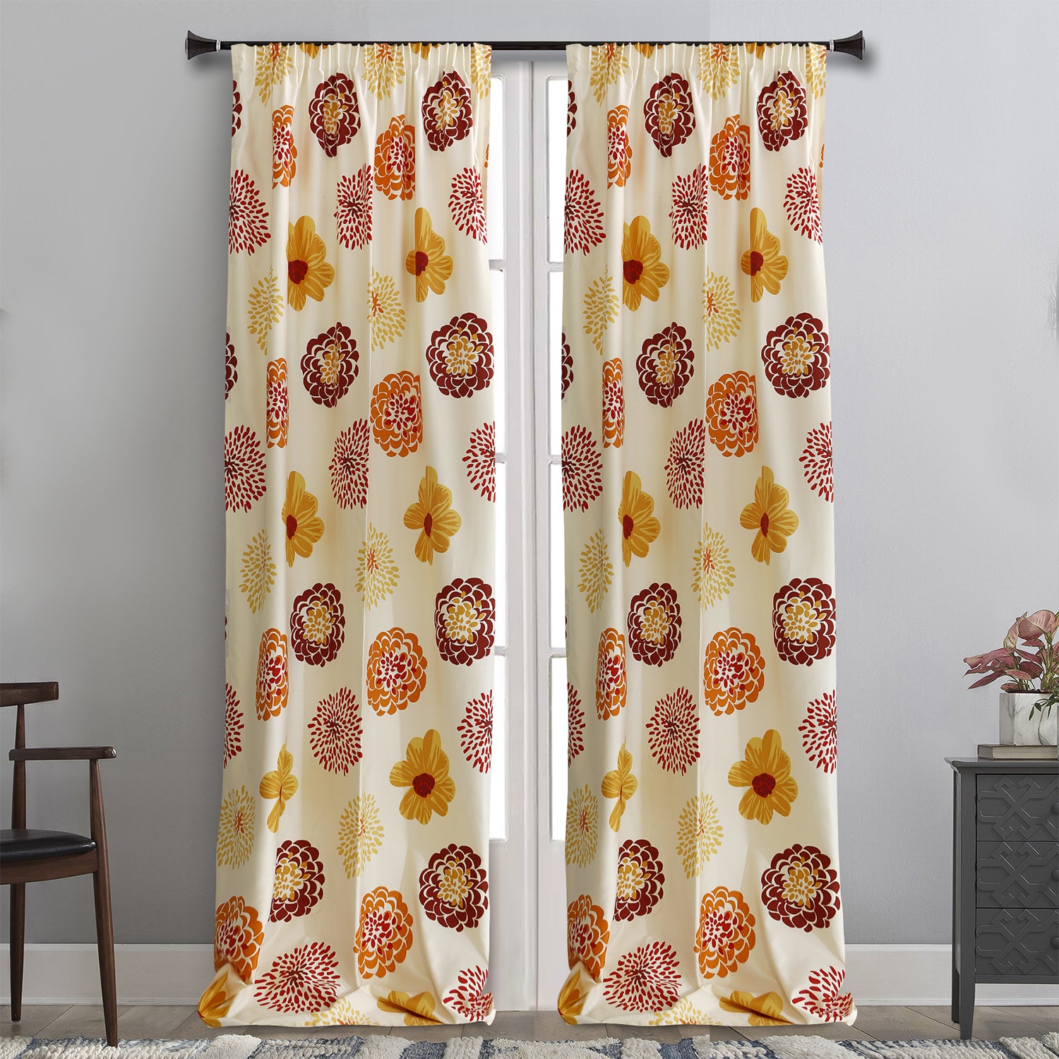 Κουρτίνα σατέν σε ιβουάρ χρώμα με τυπωτά λουλούδια σε πορτοκαλί και κόκκινο χρώμα μέτριας διαφάνειας που επιτρέπει φως μέσα στο χώρο. Είναι ήδη ραμμένη με τρέσα 8 εκ. στο επάνω μέρος έτοιμη για κρέμασμα. Η διάσταση κάθε φύλλου είναι 145x275. Το ύφασμα είναι πολυεστερικό με πολύ ωραίο πέσιμο, πλένεται στο πλυντήριο στους 30 βαθμούς και σιδερώνεται εύκολα. Ιδανική ως εξωτερική αλλά και μόνη της προτείνεται για όλους τους χώρους του σπιτιού χαρίζει μοναδική αίσθηση πολυτέλειας. Στο συγκεκριμένο σχέδιο υπάρχει και η αντίστοιχη οργάντζα.