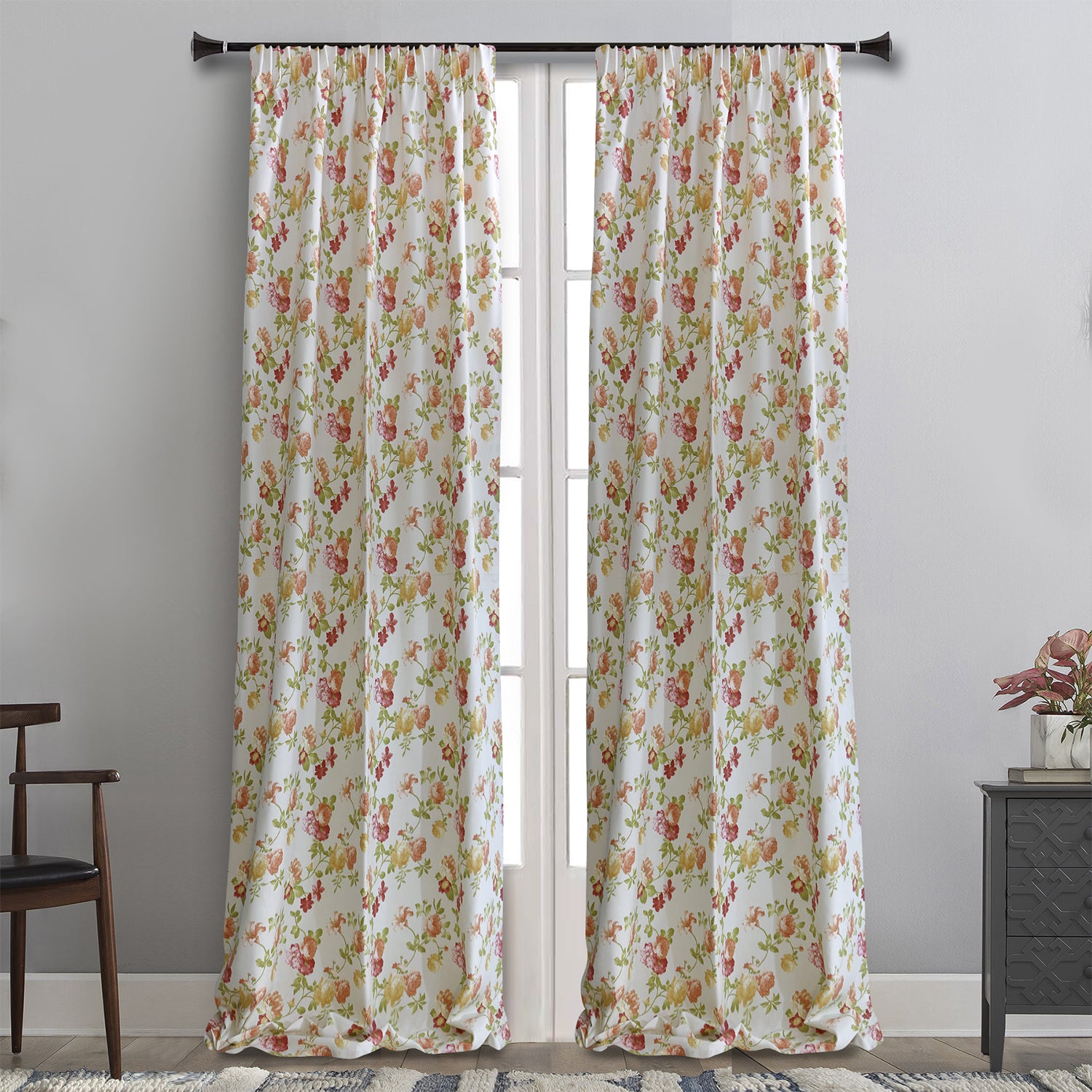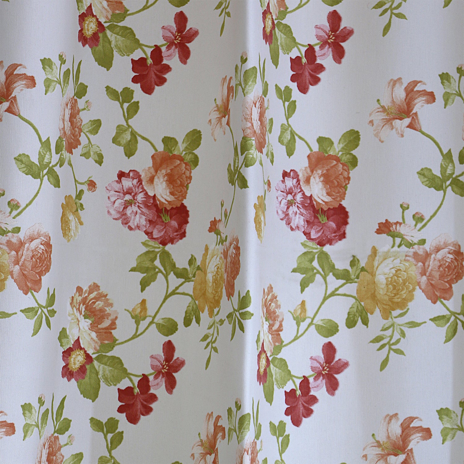 Κουρτίνα εμπριμέ σε προτοκαλί χρώμα με ιβουάρ φόντο και τυπωμένα λουλούδια στους τόνους του πορτοκαλί και του κόκκινου, χαμηλής διαφάνειας που επιτρέπει φως μέσα στο χώρο. Είναι ήδη ραμμένη με τρέσα 8 εκ. στο επάνω μέρος έτοιμη για κρέμασμα. Η διάσταση κάθε φύλλου είναι 145x275. Το ύφασμα είναι σύμμικτο με πολύ ωραίο πέσιμο, πλένεται στο πλυντήριο στους 30 βαθμούς και σιδερώνεται εύκολα. Ιδανική ως πλαϊνή αλλά και μόνη της προτείνεται για όλους τους χώρους του σπιτιού χαρίζει ρομαντική και μοντέρνα αίσθηση.