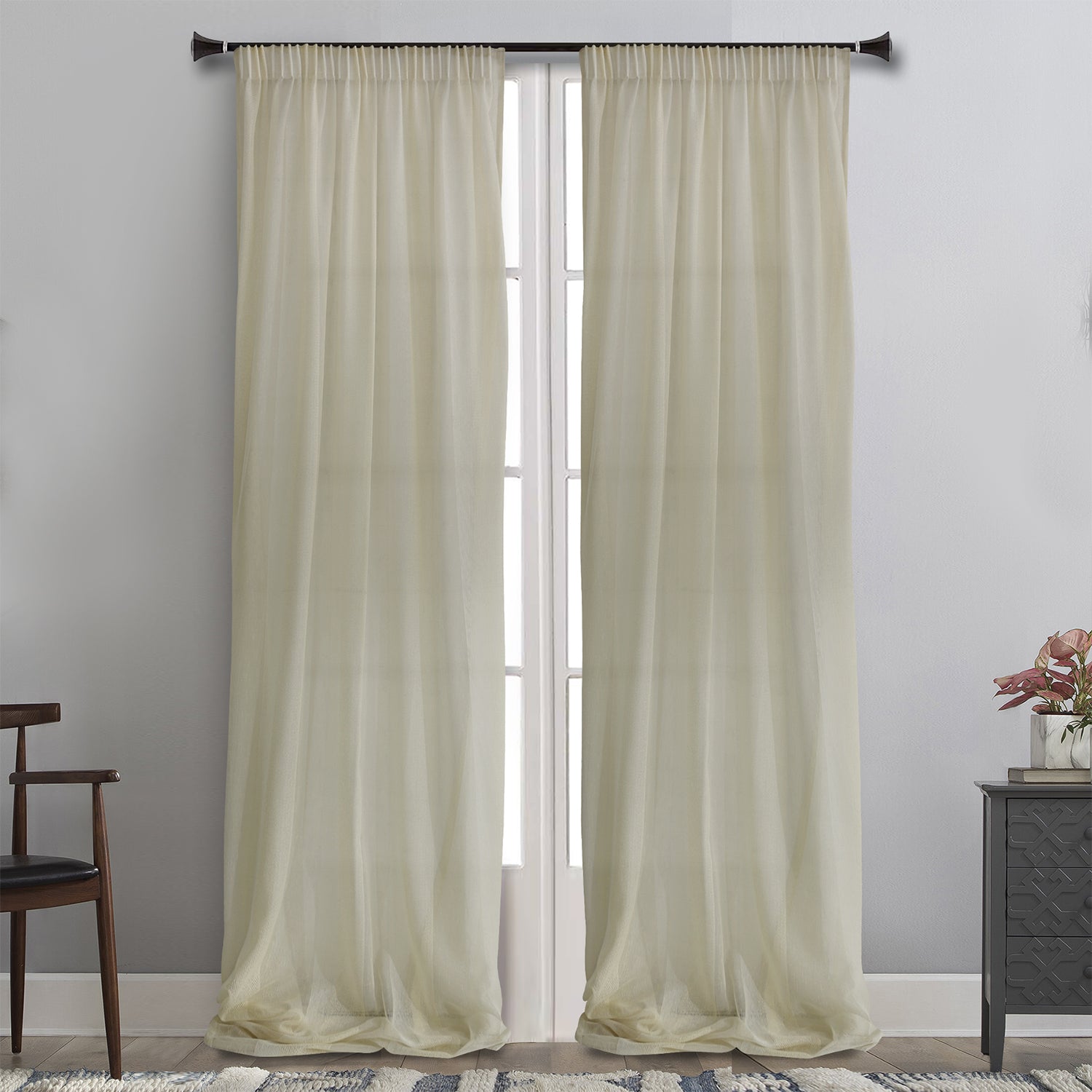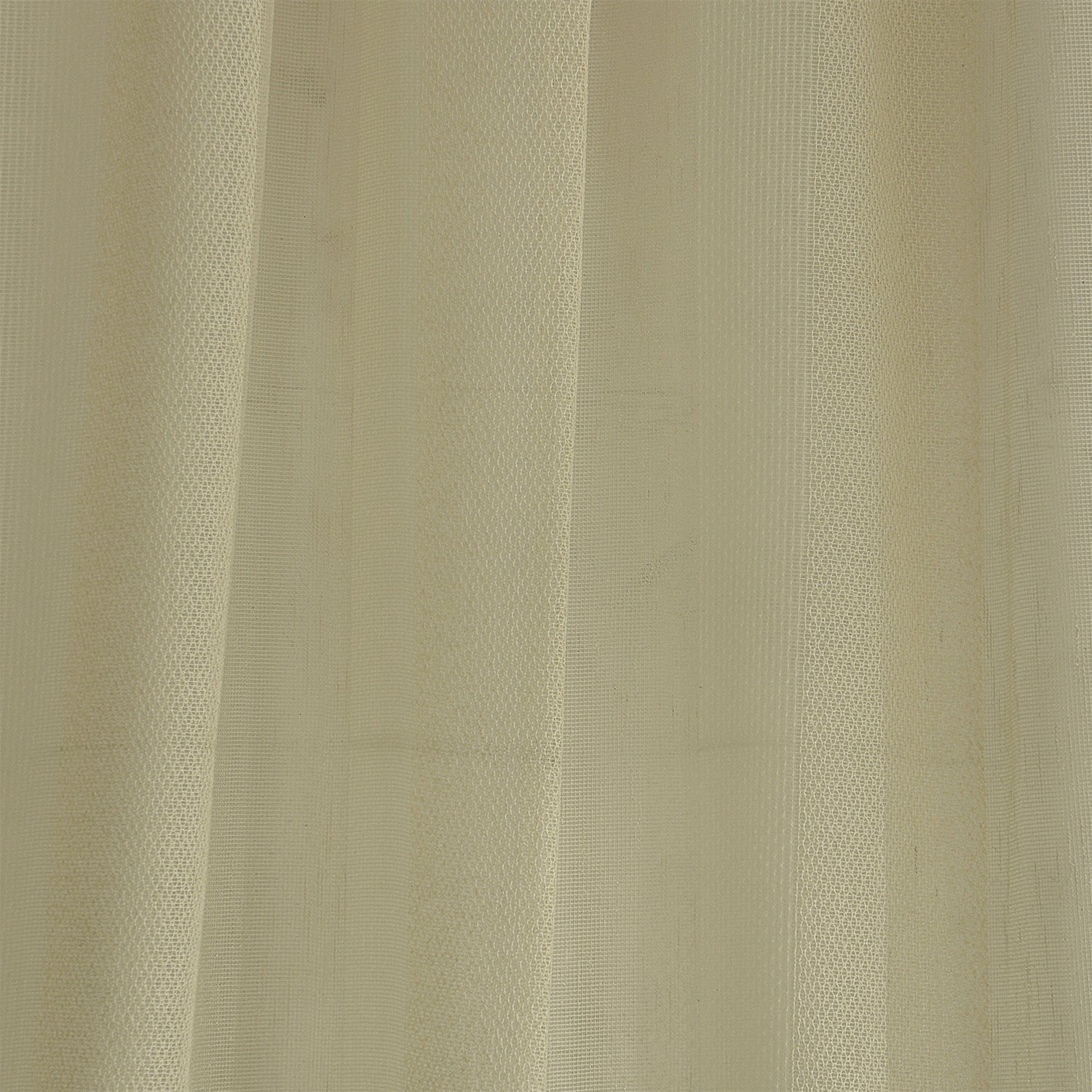 Κουρτίνα με λεπτή γάζα σε εκρού χρώμα με ρίγες διαφορετικής ύφανσης στο ίδιο χρώμα, μεγάλης διαφάνειας που επιτρέπει αρκετό φως μέσα στο χώρο. Είναι ήδη ραμμένη με τρέσα 8 εκ. στο επάνω μέρος έτοιμη για κρέμασμα, ενώ στο κάτω μέρος έχει βαρίδι. Η διάσταση κάθε φύλλου είναι 145x290. Το ύφασμα είναι πολυεστερικό με πολύ ωραίο πέσιμο, πλένεται στο πλυντήριο στους 30 βαθμούς και σιδερώνεται εύκολα. Ιδανική  ως εσωτερική αλλά και μόνη της προτείνεται για όλους τους χώρους του σπιτιού χαρίζει μοναδική αίσθηση πολυτέλειας.
