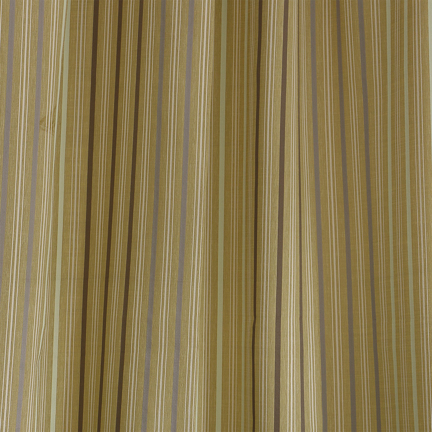 Κουρτίνα γάζα σε φυσικό χρώμα με εκρού, γκρι, καφέ και βεραμάν ρίγες που έχουν μια πολύ διακριτική γυαλάδα, μέτριας διαφάνειας που επιτρέπει φως μέσα στο χώρο. Είναι ήδη ραμμένη με τρέσα 8 εκ. στο επάνω μέρος έτοιμη για κρέμασμα, ενώ στο κάτω μέρος έχει βαρίδι. Η διάσταση κάθε φύλλου είναι 145x290. Το ύφασμα είναι πολυεστερικό με πολύ ωραίο πέσιμο, πλένεται στο πλυντήριο στους 30 βαθμούς και σιδερώνεται εύκολα. Ιδανική ως εξωτερική αλλά και μόνη της προτείνεται για όλους τους χώρους του σπιτιού χαρίζει μοναδική αίσθηση πολυτέλειας.