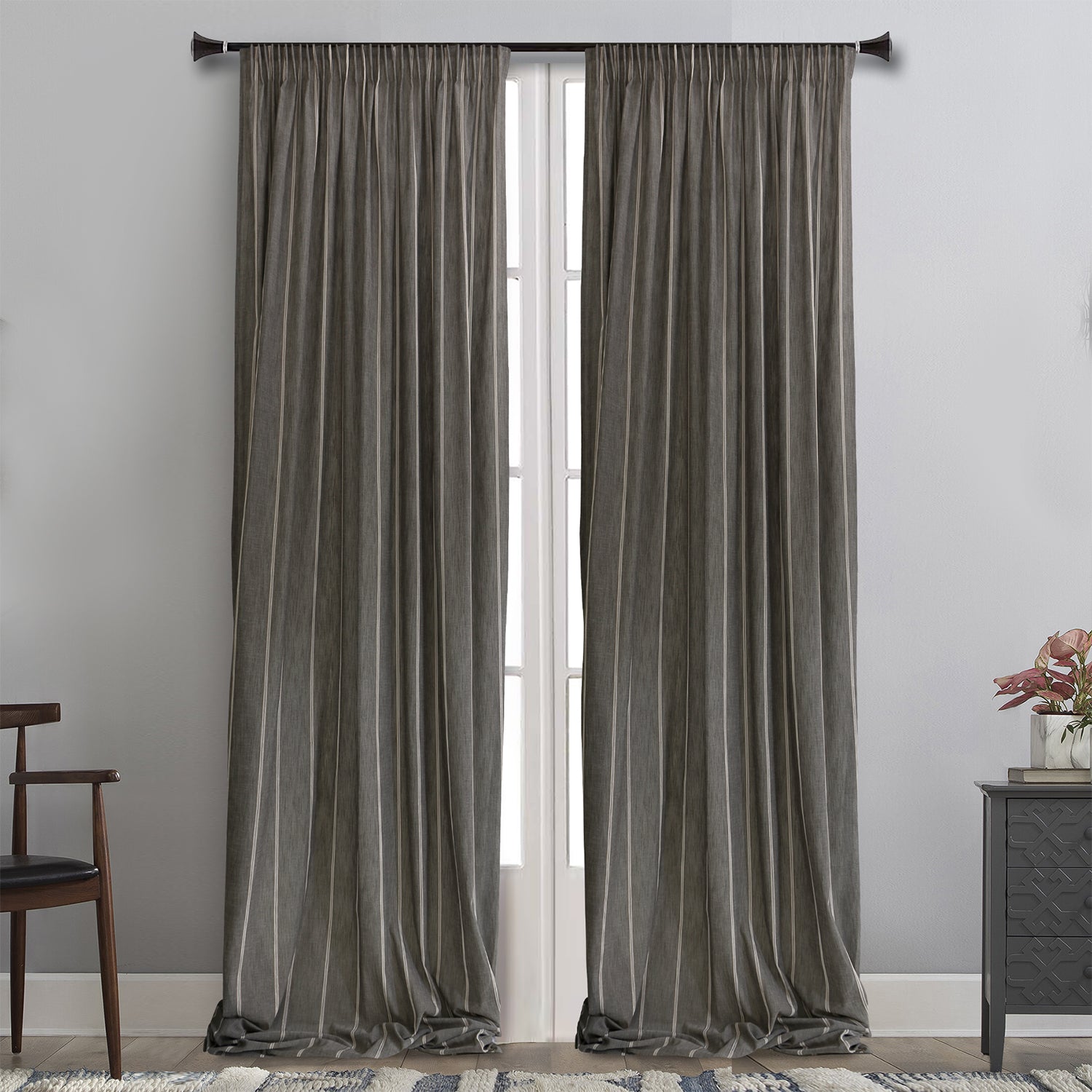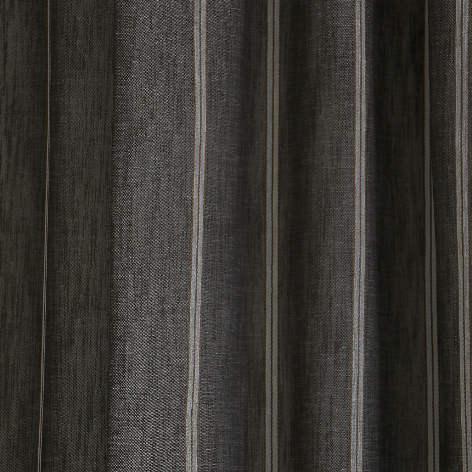 Κουρτίνα γάζα ριγέ σε γκρι χρώμα με λεπτές διακριτικές ρίγες σε ανοιχτό καφέ χρώμα, μεγάλης διαφάνειας που επιτρέπει φως μέσα στο χώρο.  Είναι ήδη ραμμένη με τρέσα 8 εκ. στο επάνω μέρος έτοιμη για κρέμασμα, ενώ στο κάτω μέρος έχει βαρίδι. Η διάσταση κάθε φύλλου είναι 145x290. Το ύφασμα είναι πολυεστερικό με πολύ ωραίο πέσιμο, πλένεται στο πλυντήριο στους 30 βαθμούς και σιδερώνεται εύκολα. Ιδανική ως εσωτερική αλλά και μόνη της προτείνεται για όλους τους χώρους του σπιτιού χαρίζει μοναδική αίσθηση πολυτέλειας.
