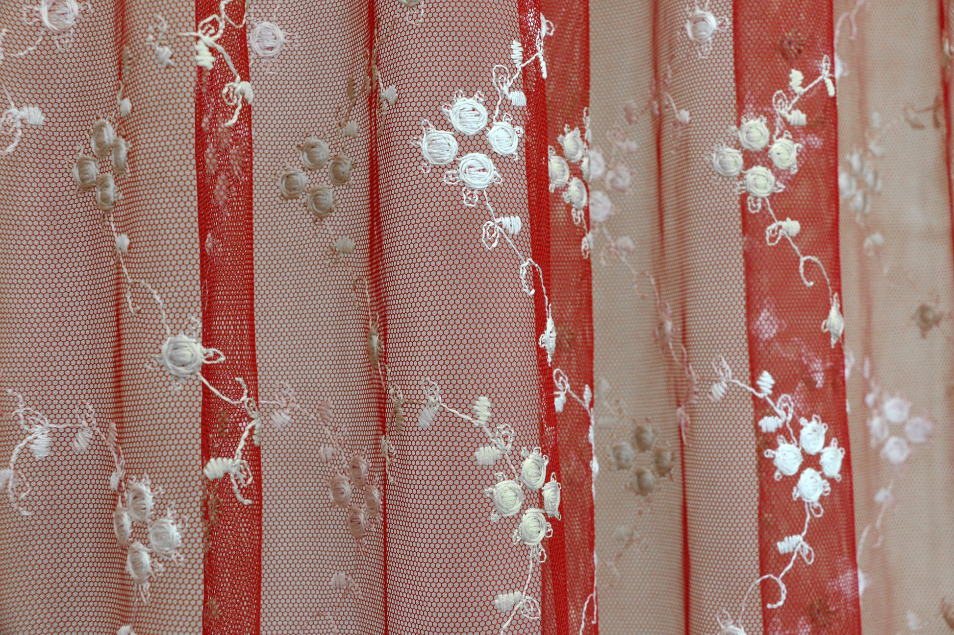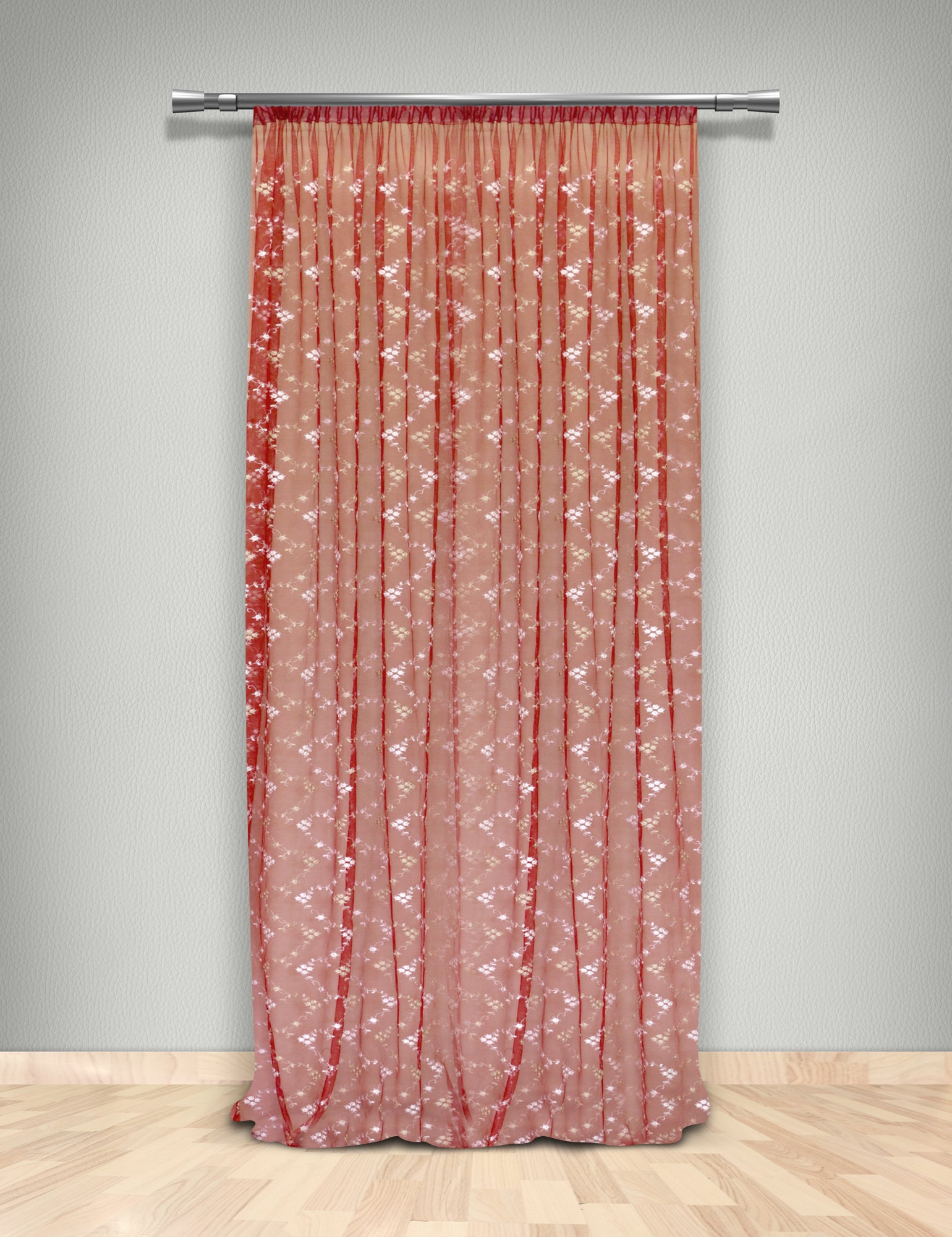 Κουρτίνα τούλι σε κόκκινο χρώμα είναι κεντημένη με κόκκινο τούλι πυκνά κεντημένο με εκρού και μπεζ μικρά λουλούδια, δημιουργώντας ένα ιδιαίτερα εντυπωσιακό και κομψό αποτέλεσμα. Με υψηλή διαφάνεια, επιτρέπει πολύ φως να εισέλθει στον χώρο, δημιουργώντας μια φωτεινή και ευχάριστη ατμόσφαιρα. Είναι ήδη ραμμένη με τρέσα 6 εκ. στο επάνω μέρος, έτοιμη για κρέμασμα, ενώ στο κάτω μέρος διαθέτει βαρίδι για τέλεια εφαρμογή. Η διάσταση κάθε φύλλου είναι 145x290 εκ. Το ύφασμα είναι πολυεστερικό με πολύ ωραίο πέσιμο, πλένεται στο πλυντήριο και είναι εύκολο στο σιδέρωμα. Η εξαιρετική του ποιότητα το καθιστά ιδανικό για χρήση είτε μόνη της είτε ως εσωτερική κουρτίνα. Προτείνεται για όλους τους χώρους του σπιτιού, προσφέροντας αίσθηση πολυτέλειας και ζωντάνιας στον χώρο σας.