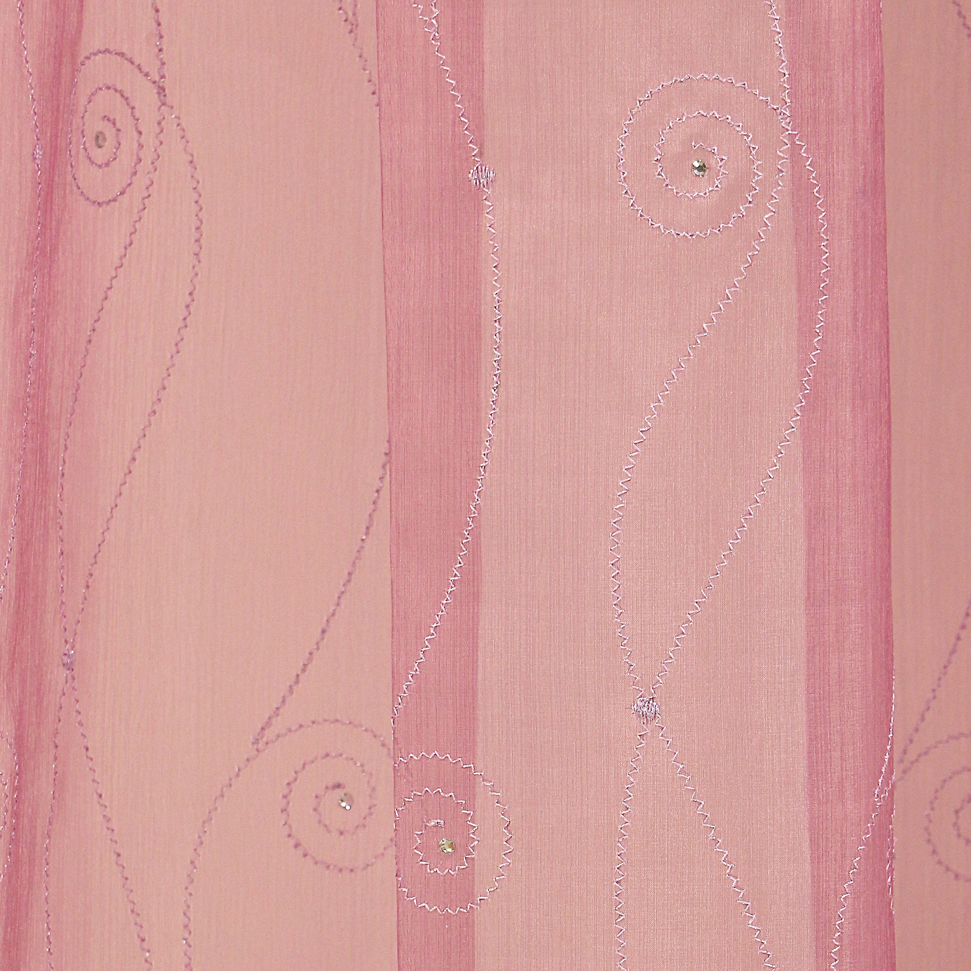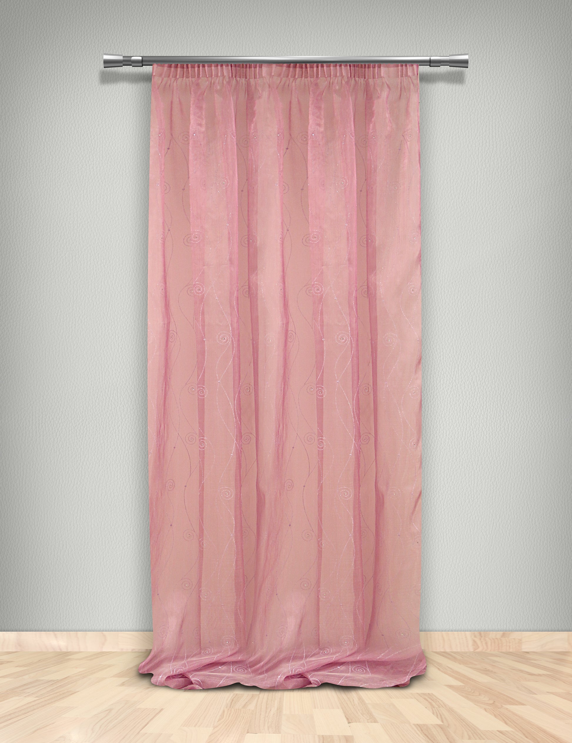 Κουρτίνα οργάντζα κεντημένη σε λιλά χρώμα. Το ύφασμα είναι οργάντζα λιλά με κεντημένα σχέδια σε όλο το ύψος στον ίδιο τόνο, τα σχέδια είναι διακοσμημένα με κρύσταλλα swarovsky, μεγάλης διαφάνειας που επιτρέπει φως μέσα στο χώρο. Είναι ήδη ραμμένη με τρέσα 6 εκ. στο επάνω μέρος έτοιμη για κρέμασμα, ενώ στο κάτω μέρος έχει βαρίδι. Η διάσταση κάθε φύλλου είναι 145x300. Το ύφασμα είναι πολυεστερικό με πολύ ωραίο πέσιμο, πλένεται στο πλυντήριο στους 30 βαθμούς και σιδερώνεται εύκολα. Ιδανική για όλους τους χώρους του σπιτιού χαρίζει αίσθηση εξαιρετικής πολυτέλειας.
